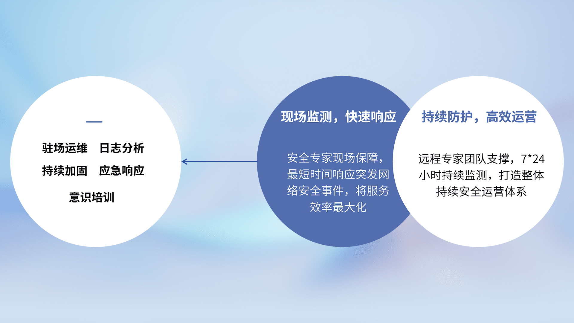 针对客户行业特性,,,,提供专属的一站式安全管理服务,,,,帮助客户全面感知网络空间威胁,,,通过安全专家的线上、、、、线下防护支持,,实现风险闭环,,,,将安全保障常态化,,,,为客户打造常态化安全运维运营服务。。。。